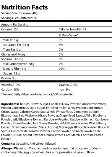 ViSalus Nutra-Cookie™ is a guilt-free ‘mini-meal’ (snack) that may help you curb hunger; and fuel your body with protein, antioxidants, fiber, prebiotics, and more! The delicious and chewy cookie is packed with 9 grams of protein and 5.5 grams of fiber. Easy to eat on the go, or put in the microwave for 10 seconds for a warm treat. Savor the taste of our three delectable flavors: Chocolate Chip, Oatmeal Raisin, and Peanut Butter. Nutra-Cookie may help support: