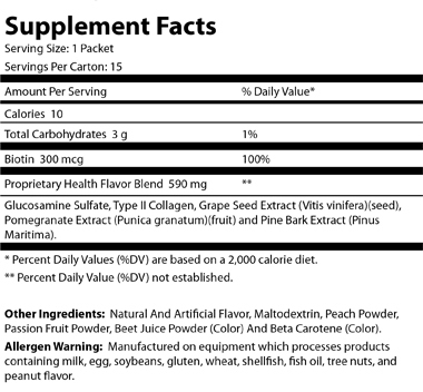 Each packet is not just a flavor, they are concentrated nutrition! Chocolate Cardia Care has polyphenols, which are great antioxidants and support heart health. Chocolate Cardia has about the equivalent of 6-8 bars of dark chocolate for only a few calories. Banana Energy Charge has guarana power to provide a burst of energy that lasts. Strawberry Phyto Power has about 50 strawberries worth of phytonutrient protective power per packet. Peach Complexion Care has glucosamine, biotin, collagen and more to support healthy skin and healthy joints. Orange Everyday Defense has immune and detox supporting ingredients.